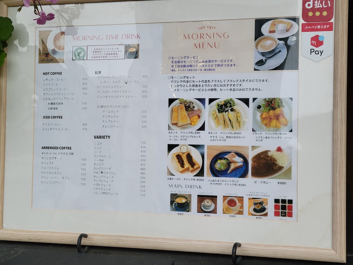 Welcome to Cafe tigre Fushimi, a cozy spot nestled in the heart of Nagoya. This cafe offers a delightful menu that caters to both morning and lunch crowds, making it a popular choice among locals and visitors alike.
